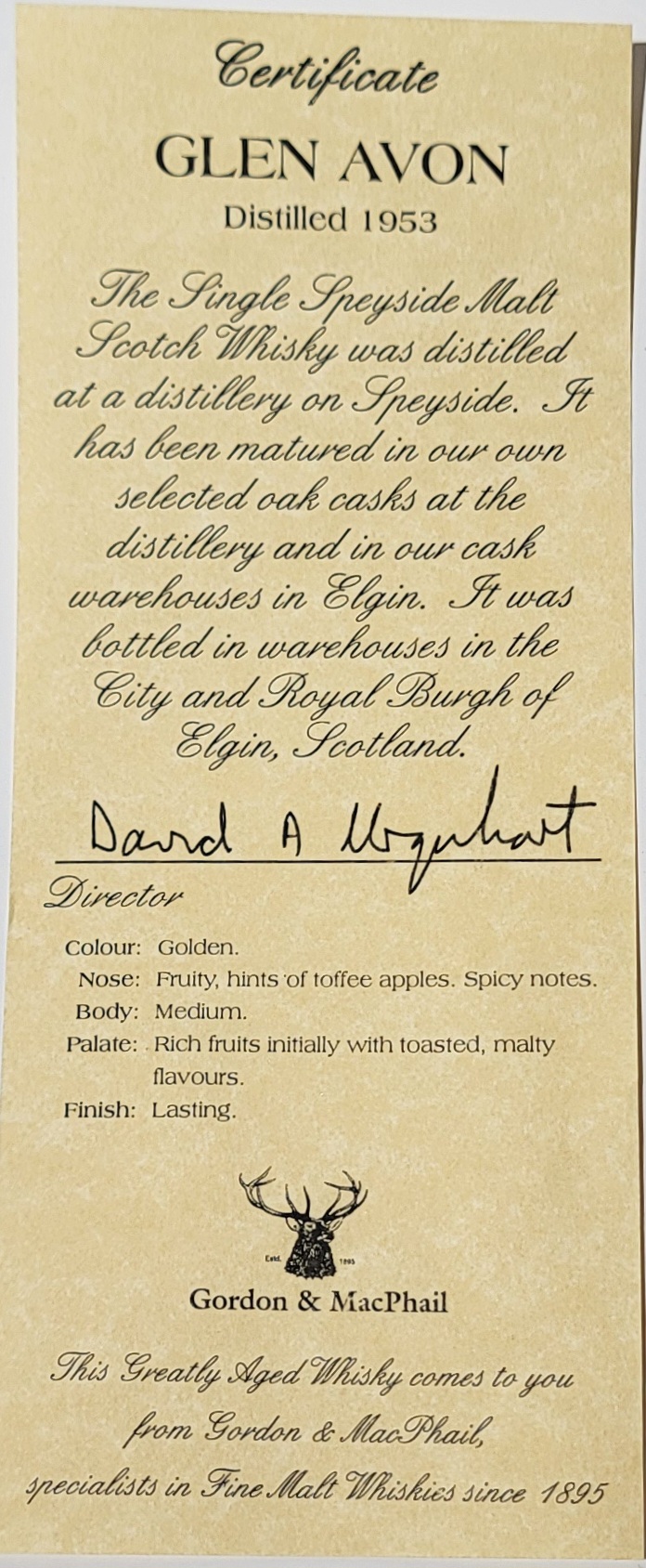 Gordon & MacPhail Glen Avon 1953 51 Years Old