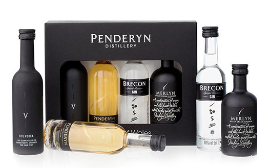Vier Miniaturen (je 5 cl) renommierter Penderyn-Spirituosen: