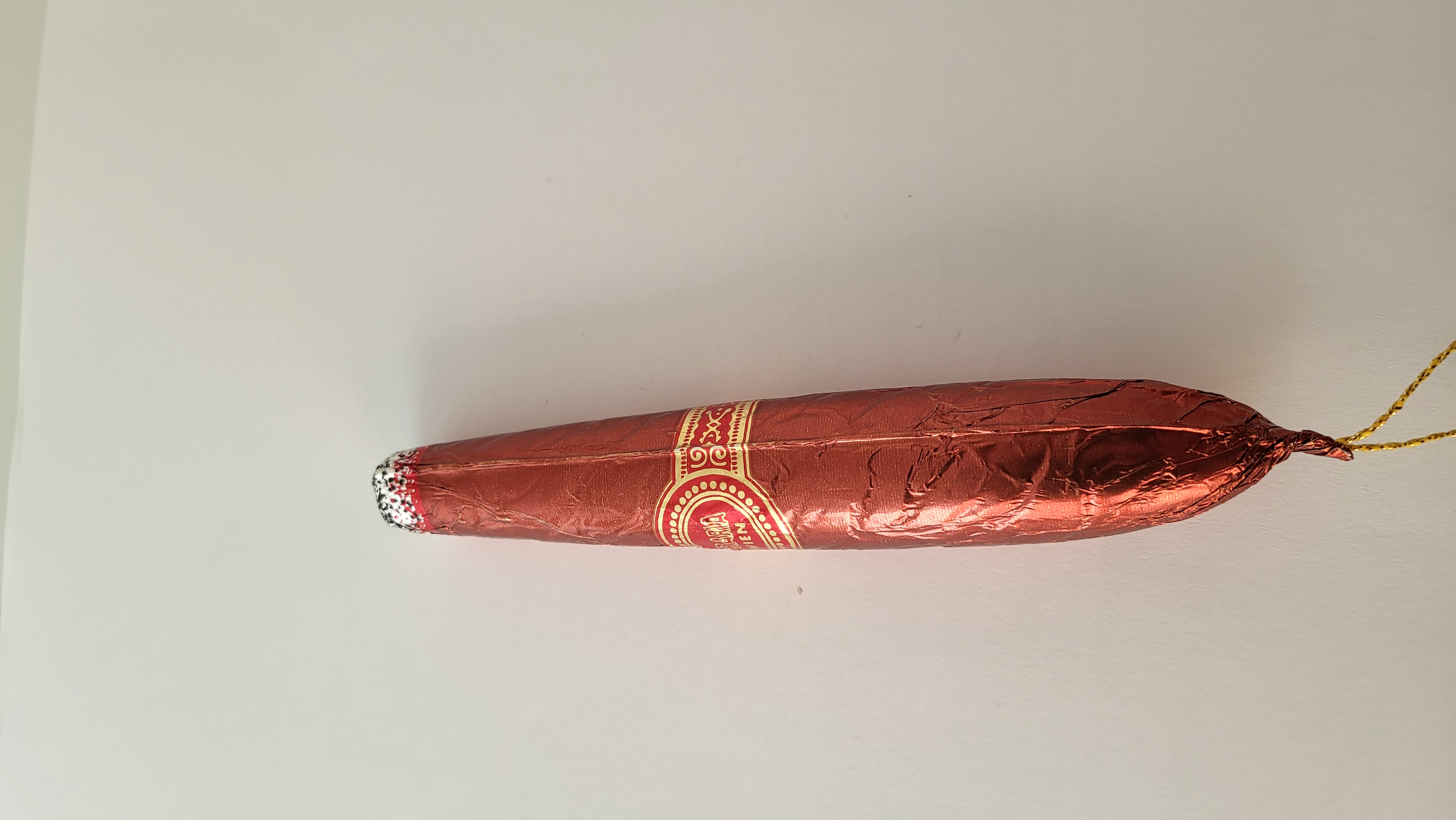 Schokolade-Zigarre aus BIO Vollmilch. Ein wunderschönes und geschmackvolles Geschenk, per Hand in Stanniol gepackt.